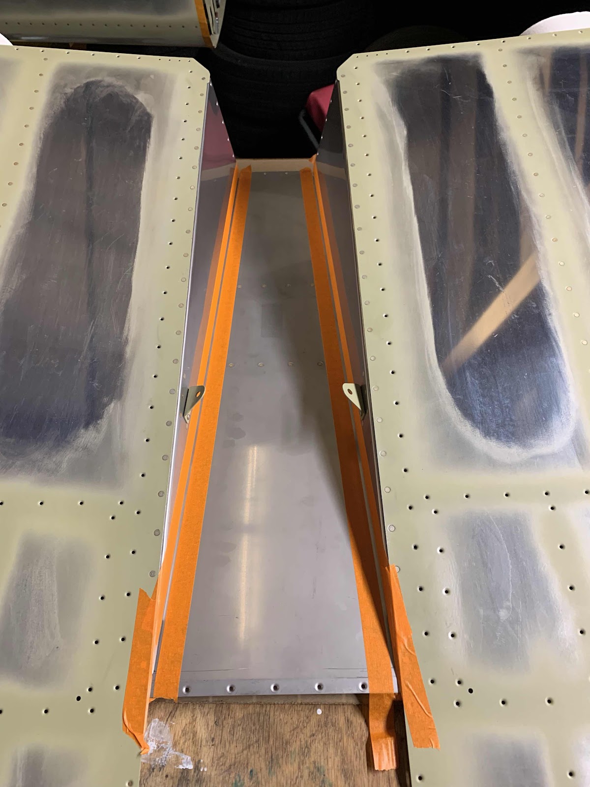 Tonight’s session was kinda short, but I was able to complete the Proseal application in the muffler area. To start, I cleaned the area with isopropyl alcohol and then marked off where the proseal would be applied with orange tape (this helps in the clean up of excess proseal). I applied beads of proseal in the seam created by the Muffler Shroud Ramp and Muffler Shroud Sides and used a popsicle stick to smooth out the bead of proseal.