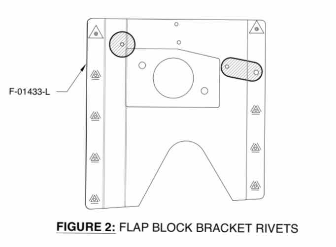 I worked a rather short session tonight.....only installed nine rivets (seven AN470AD4-5 and two AN426AD3-4). I installed the right Flap Block Bracket with the rivets shown below. (Just a reminder: Unless otherwise noted, Van’s only shows plans for the left side build (the right side is usually a mirror of the left—again, unless otherwise noted). So, the excerpt (left side) and the two pictures below (right side) will look backwards.