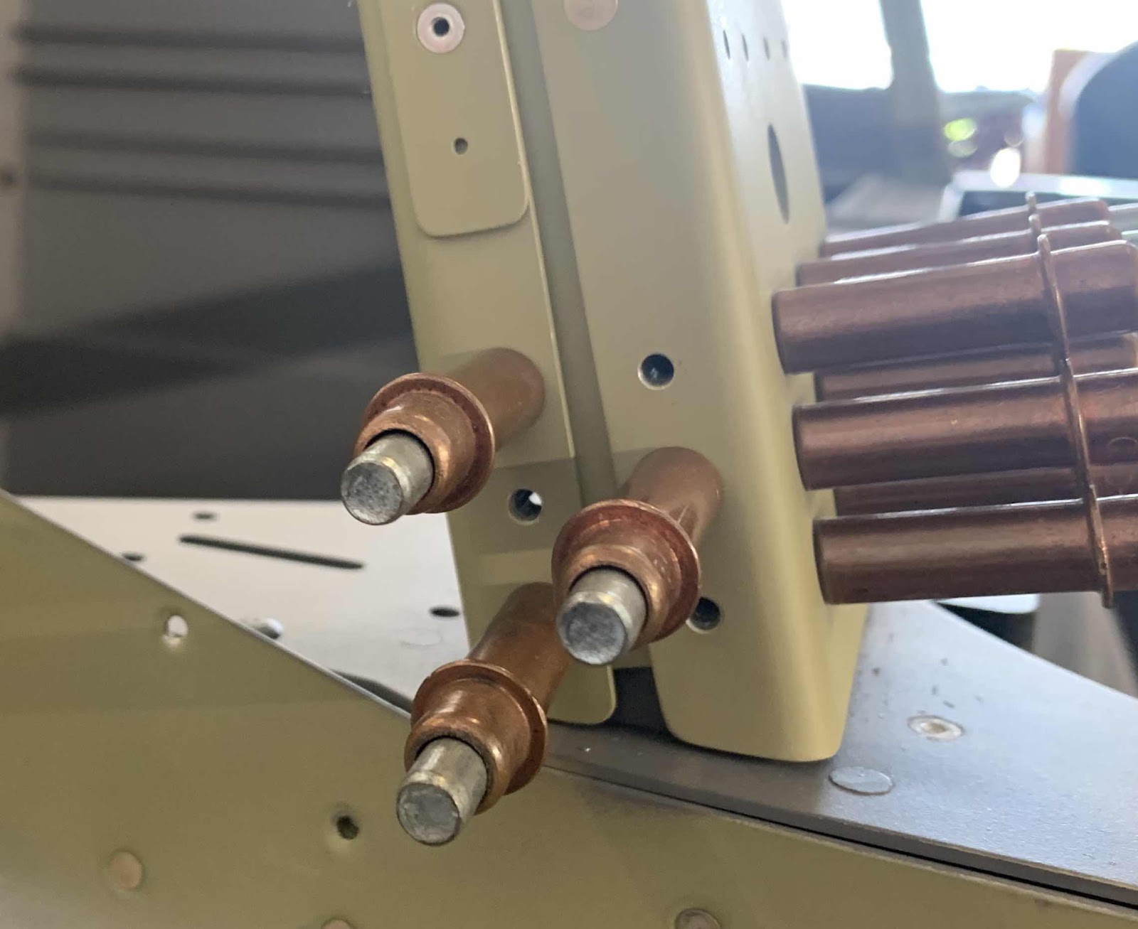 Here is the other end of the Assembly clecoed to the FWD and AFT Roll Bar Assemblies. (Additionally, here are a few of the 426 rivets used on the FWD Roll Bar Assembly and the CS4-4 rivets used on the Window Shims and AFT Roll Bar Assembly).