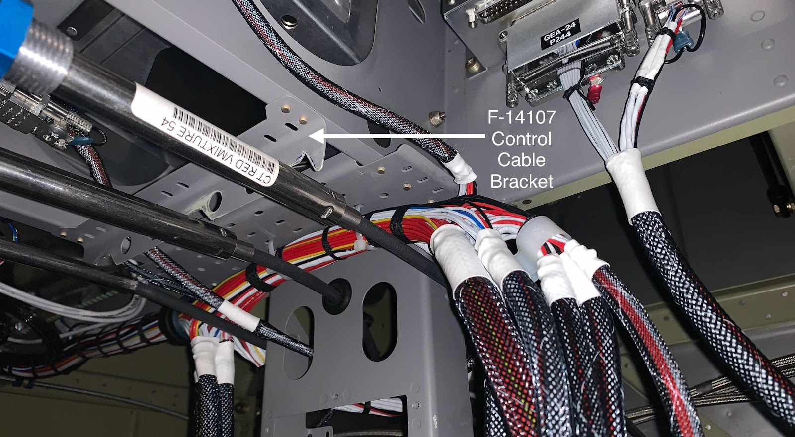 Since I had Aerotronics build the panel, the stock F-14107 Control Cable Bracket (previously installed) is not properly aligned with the control cables anymore. In the first picture, I tried horribly to “make it work” and modify the existing bracket…..FAIL!