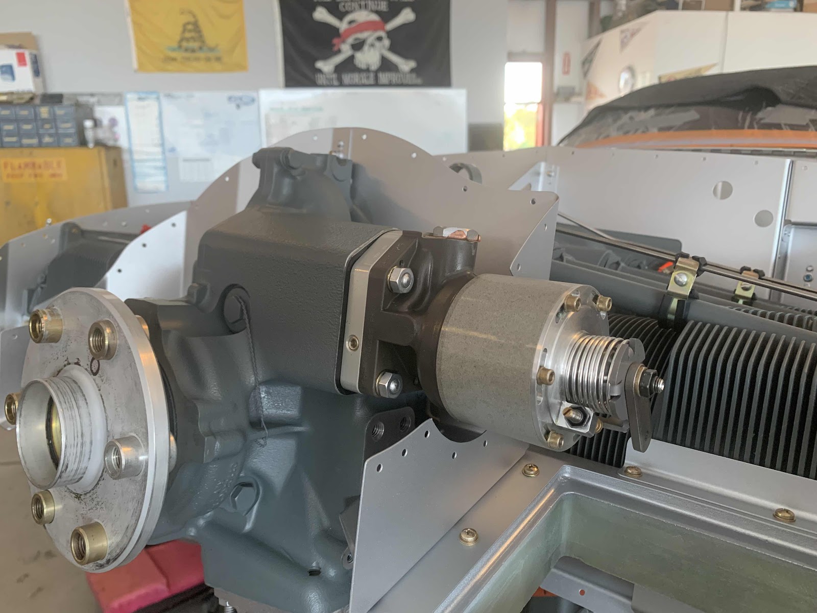 This is the Left FWD Assembly installed on the engine. Van’s did a great job designing the Baffling! Look how nicely this piece fits around the prop governor.