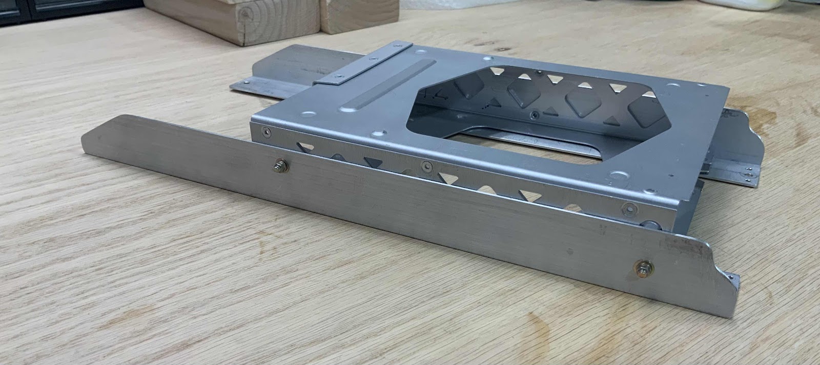 The tray already had six countersunk mounting holes (three on each side) built into the assembly on either side of the tray. The front of the tray has an upper and lower mounting hole on the side(s) of the tray. I used the lower hole because the upper hole was too upper for the aluminum angle…..easy decision. The back of the tray only had a single mounting hole in the middle…..easier decision.